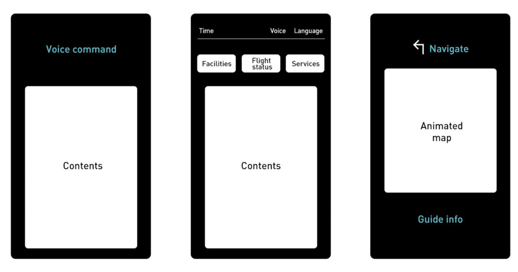 We expected that certain types of information and places would have clear priorities based on what most travelers need at an airport. Through research, we discovered that many people struggle to locate restrooms, departure and arrival gates, restaurants, and other key facilities in large airports. This often leads to uncomfortable moments and unnecessary stress, especially when travelers are short on time and must rely solely on signs to find their way.