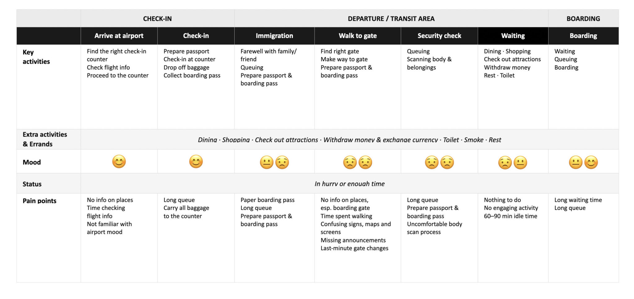 We also learned that flight information such as gate numbers, departure and arrival details, and boarding times is the first thing travelers check when they arrive at the airport. Only after confirming this information, they feel a sense of relief and emotional stability.