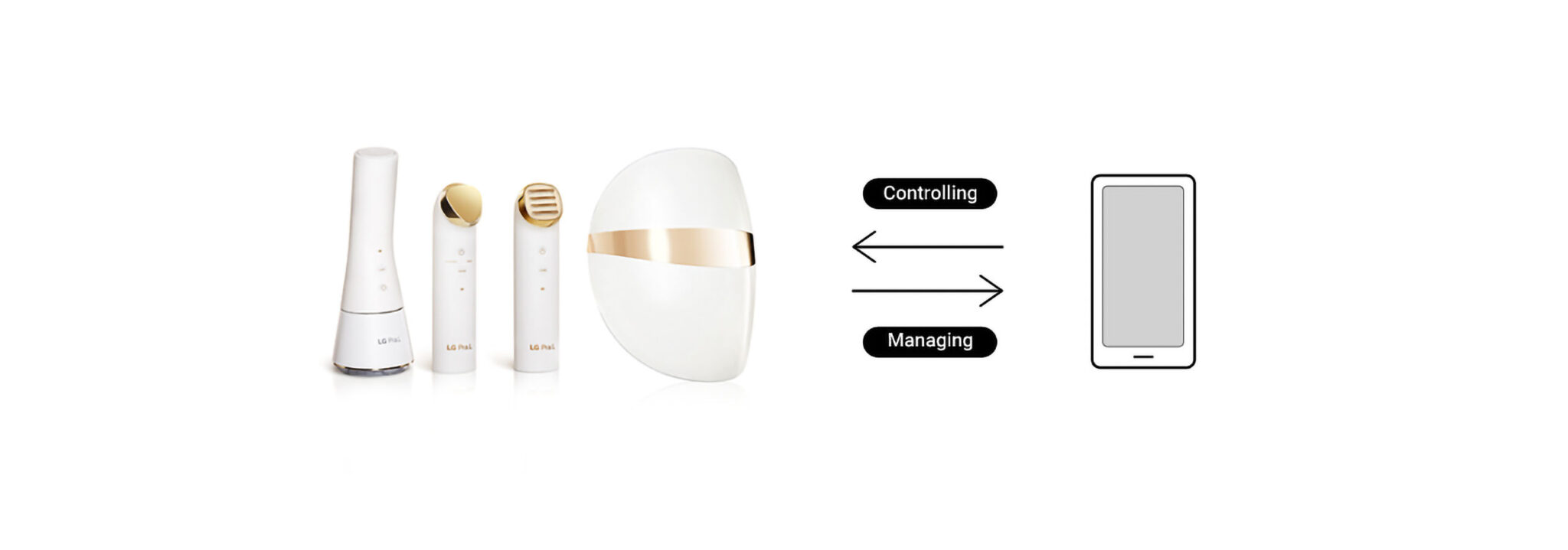 Basically there are four appliances having different functions, brush cleanser, galvanic, booster, derma LED mask and tight-up lifter. Each appliance is connected to the mobile App which helps users to control appliance when they use them. Also via App, user can manage their skin routine and get useful information about the skin care.